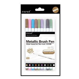 Metallic Brush Marker Pens Set of 10 | CorotThe Corot Metallic Brush Marker Pens Set includes 10 beautifully pigmented markers with a shimmering metallic finish, perfect for adding sparkle and elegance to your artwork. Each pen features a flexible brush tip that allows for smooth, controlled strokes — ideal for calligraphy, hand lettering, illustra..
